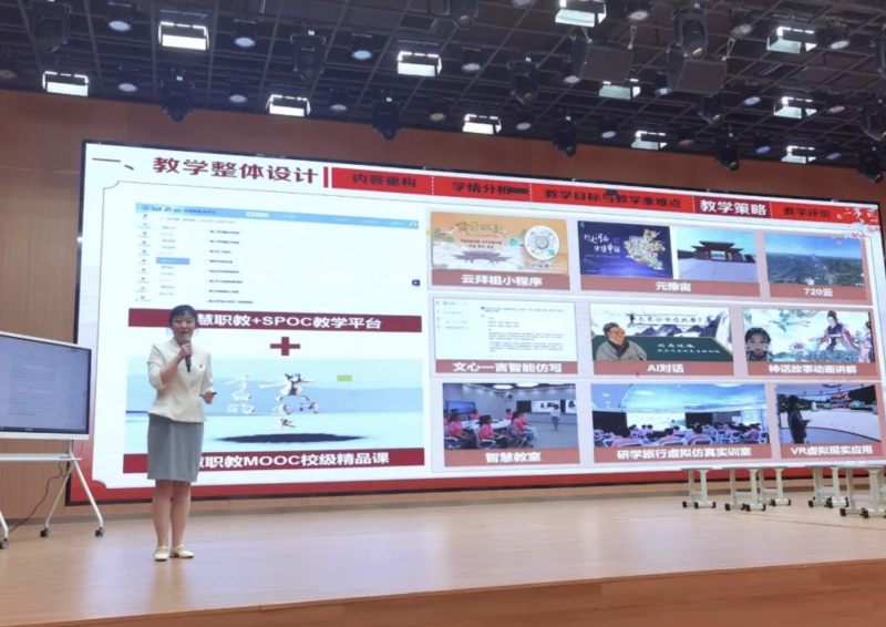 在教育數字化的浪潮下,鄭州旅遊職業(ye) 學院積極探索創新教學模式,於(yu) 11月27日在學生活動中心報告廳舉(ju) 辦了“數字賦能 共築未來”示範課展示活動,旨在推動信息技術與(yu) 教育教學的深度融合,提升教師教學能力和人才培養(yang) 質量。校黨(dang) 委書(shu) 記王豔紅,黨(dang) 委委員、副校長張建軍(jun) 出席活動,全體(ti) 教師參加,鄭州鐵路職業(ye) 技術學院秦浩博士進行現場點評。活動由教務處處長胡華主持。 活動現場,柴蓓和王瑩瑩老師帶來了一節精彩紛呈的示範課——《黃河文化文字之源導遊詞創作》,緊跟旅遊產(chan) 業(ye) 升級要求,優(you) 化課程模塊,按照“黃、美、清、富”的邏輯主線植入代表性文化景觀,串起了導遊技能的培養(yang) ,並運用了動畫、視頻等多種教學資源,將在線協同編輯、AI智能等信息化手段, 融入到日常教學中,調動了學生的學習(xi) 積極性。 弓婧媛和孫亦靜老師的示範課——《文觀華夏 步丈中原》,從(cong) 作品展示導入,通過文本分析、仿寫(xie) 練習(xi) 、研學講解訓練、吟誦等教學環節,完成對詩歌的學習(xi) ,帶領學生感受詩歌所承載的黃河文明之美。授課過程中,老師依托現代信息工具,完成自評互評、教師點評、人機對話等互動反饋,教學效果良好。 最後,張建軍(jun) 進行總結講話。他指出,教師是學校的源頭活水,是教學質量的主體(ti) ,教師強則學校興(xing) ,兩(liang) 個(ge) 優(you) 秀課程團隊的展示是一次對最新教育理念的生動實踐,希望在座老師在今後的教學中能夠不斷提升學習(xi) 能力和教學水平,推進“五金”新基建,助力鄭州旅遊職業(ye) 學院新“雙高”申建。