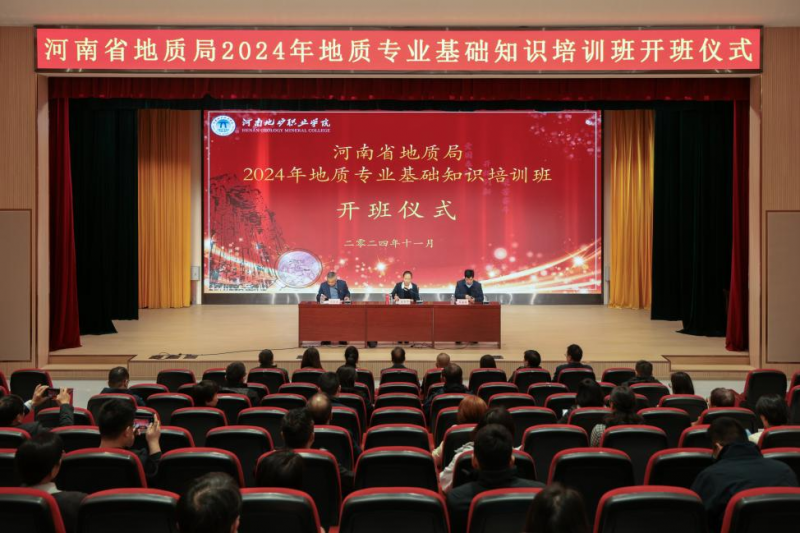 為(wei) 加快適應新時代地質工作新要求,積極響應習(xi) 近平生態文明思想和總書(shu) 記“向地球深部進軍(jun) ”號召,11月25日—29日,河南省地質局在河南地礦職業(ye) 學院舉(ju) 辦2024年地質專(zhuan) 業(ye) 基礎知識培訓班。河南省地質局二級巡視員台本華、校黨(dang) 委書(shu) 記焦洪濤出席開班儀(yi) 式並致辭,地質局54名參訓學員及地礦工程學院、教務處、科技服務處等部門負責人參加開班儀(yi) 式。儀(yi) 式由黨(dang) 委副書(shu) 記、校長劉玉賓主持。