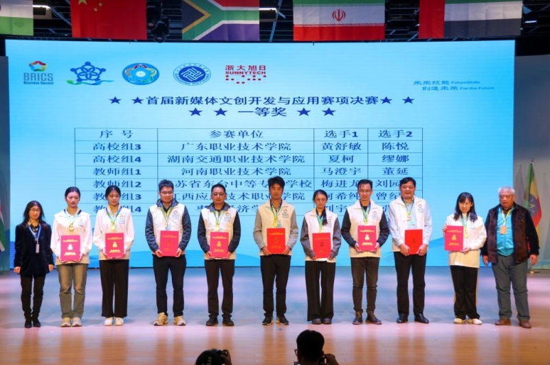 11月27日至30日,2024一帶一路暨金磚國家技能發展與(yu) 技術創新大賽首屆新媒體(ti) 文創開發與(yu) 應用賽項在廣東(dong) 職業(ye) 技術學院舉(ju) 行。經過激烈角逐,河南職業(ye) 技術學院智能製造學院教師董延和馬澄宇,學生常鵬展和江子傑均以第一名的成績,分獲大賽教師組和學生組一等獎;董延、馬澄宇獲優(you) 秀指導教師獎;學校獲最佳組織獎。