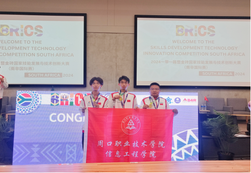 自賽事啟動以來,學校領導高度重視,各相關(guan) 部門大力支持,為(wei) 參賽團隊提供了良好的備賽環境和資源保障。團隊成員主動對接大賽規程標準,共同解決(jue) 技術難點,以積極的態度、飽滿的熱情、堅定的信心備賽。在南非國際賽場上,周口職業(ye) 技術學院參賽隊在激烈的角逐中,憑借紮實的專(zhuan) 業(ye) 知識和卓越的創新能力,最終脫穎而出,喜獲一金一銀!