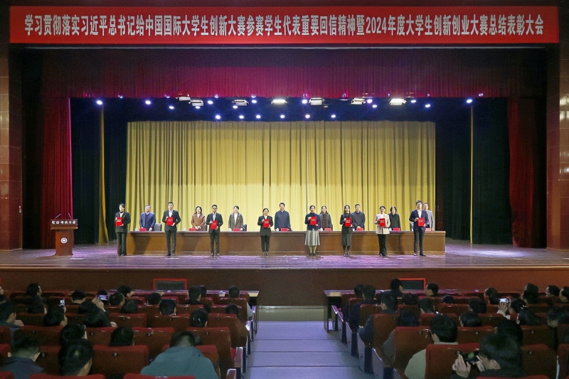 11月28日,學校貫徹落實習(xi) 近平總書(shu) 記給中國國際大學生創新大賽參賽學生代表重要回信精神大會(hui) 在開元會(hui) 議中心召開。大會(hui) 隆重表彰2024年度大學生創新創業(ye) 大賽先進集體(ti) 和先進個(ge) 人。全體(ti) 在校校領導出席會(hui) 議。會(hui) 議由黨(dang) 委副書(shu) 記海然主持。