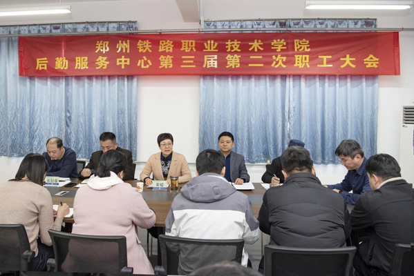 11月28日下午,鄭州鐵路職業(ye) 技術學院後勤服務中心第三屆第二次職工大會(hui) 在新校區召開,校黨(dang) 委委員、副校長董媛到會(hui) 祝賀並致辭,後勤全體(ti) 職工參加會(hui) 議。
