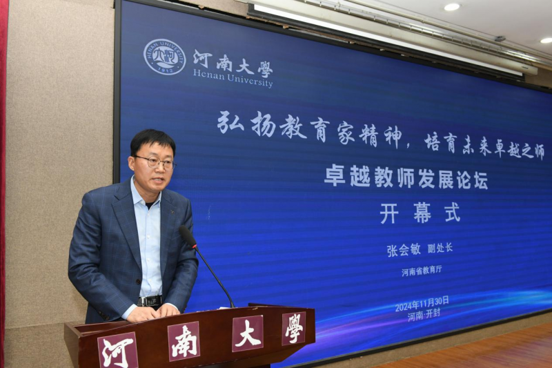為(wei) 進一步弘揚教育家精神,落實《教育部關(guan) 於(yu) 實施卓越教師培養(yang) 計劃的意見》,總結河南大學卓越教師培養(yang) 計劃改革項目實施10年的經驗,提升師範生培養(yang) 質量,11月30日,由河南大學教育學部主辦,河南教育家書(shu) 院、河南省教師教育發展研究中心協辦的“弘揚教育家精神,培育未來卓越之師——卓越教師發展論壇”在河南大學金明校區教育學部一樓報告廳舉(ju) 行。省教育廳教師工作處副處長張會(hui) 敏出席活動並致辭。