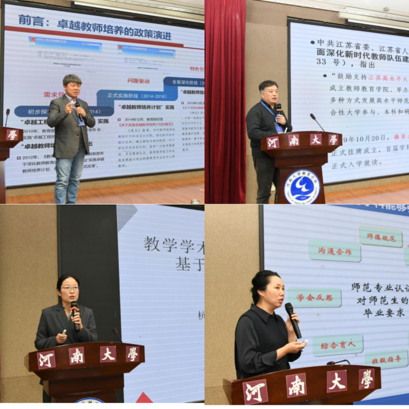 主論壇環節,東(dong) 北師範大學教師教育研究院執行院長李廣教授、南京大學教育研究院教師教育研究中心主任操太聖教授、杭州師範大學經亨頤教育學院副院長許建美教授、河南大學卓越班牽頭導師李桂榮教授圍繞“新時期卓越教師培養(yang) 模式構建與(yu) 實踐創新”主題,分別作題為(wei) 《卓越教師核心特質:個(ge) 案深描、內(nei) 容維度與(yu) 生成理路》《卓越是如何練成的:關(guan) 於(yu) “國優(you) 計劃生”培養(yang) 的實踐與(yu) 反思》《教學學術助力卓越教師培養(yang) :基於(yu) 學院的個(ge) 案分析》《六維築基“一體(ti) 四式”:綜合性大學卓越教師培養(yang) 體(ti) 係創新》的主旨報告。