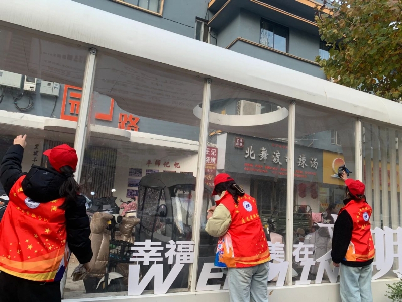 園丁路於(yu) 2023年完成升級改造,全長400米,有8處文化景觀造型, 106家商鋪, 20多米長的文化牆,展示著平頂山職業(ye) 技術學院的曆史沿革和曆屆畢業(ye) 生的老照片,成為(wei) 眾(zhong) 多市民的打卡地。誌願者們(men) 對街道文化地標、“時光·歲月”微景觀、仿古門樓和商戶門前的地磚進行認真地打掃。
