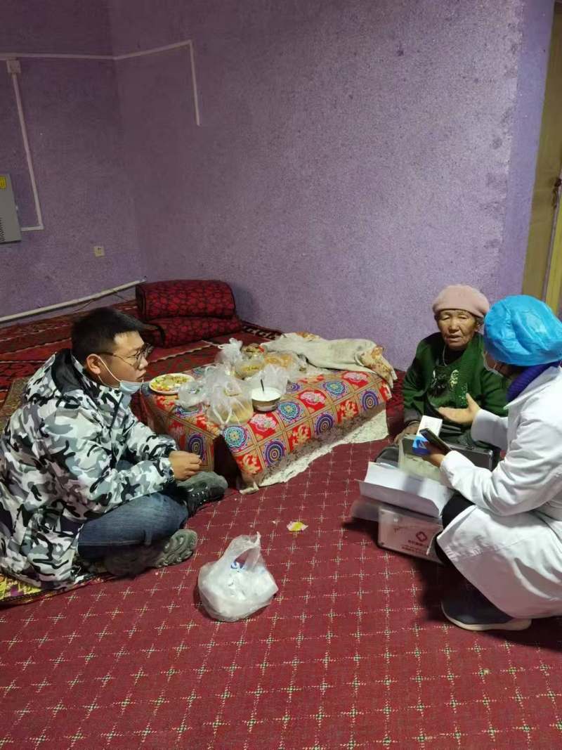 維族老人塔吉汗·吐爾遜是袁誌成的一位結親(qin) 戶,特別慈祥,袁誌成第一次拜訪老人的場景仍記憶猶新:“剛進門,奶奶熱情擁抱了我,給我戴上了一頂白氈帽,拿出了很多特色美食。奶奶很樂(le) 觀,她總是念叨,多虧(kui) 了黨(dang) 和政府幫助啊,現在這日子越過越好!”後來,袁誌成每周都定期看望這名塔吉克老人,得知老人有高血壓病史後,自費購買(mai) 電子血壓計贈送,並手把手教老人使用。
