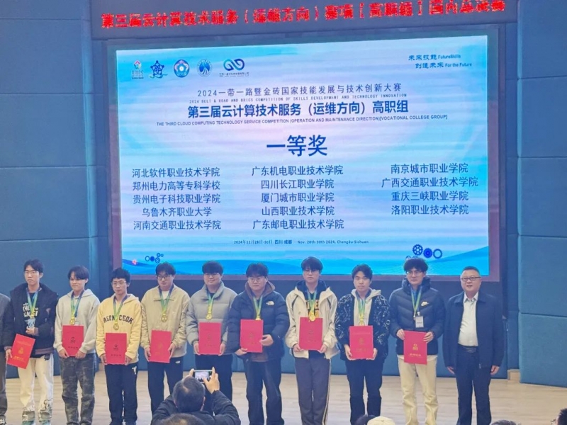 11月28日至30日,2024一帶一路暨金磚國家技能發展與(yu) 技術創新大賽雲(yun) 計算技術服務(運維方向)高職組總決(jue) 賽在四川舉(ju) 行。洛陽職業(ye) 技術學院參賽隊榮獲一等獎。