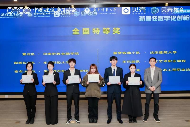 近日,由中國建設教育協會(hui) 主辦、華中師範大學承辦的“貝殼杯”第三屆全國大學生新居住數字化創新創業(ye) 大賽在武漢成功舉(ju) 辦。由河南財政金融學院工程經濟學院教師薑蕾、張可可、夏琪琦指導,2022級房地產(chan) 開發與(yu) 管理專(zhuan) 業(ye) 學生組成的“繁花隊”和“雲(yun) 舟隊”分別在大賽中獲特等獎和二等獎。