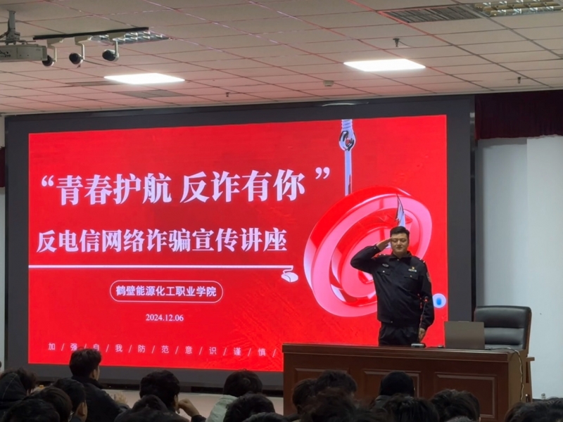為(wei) 進一步提升學生的反詐防詐意識,有效遏製電信網絡詐騙案件的發生,鶴壁能源化工職業(ye) 學院於(yu) 12月6日在綜合樓報告廳開展了反電信網絡詐騙宣傳(chuan) 講座。此次講座特邀鶴壁市公安局淇濱區分局反詐中心的民警原誌昂擔任主講嘉賓,學院300餘(yu) 名學生參會(hui) 。