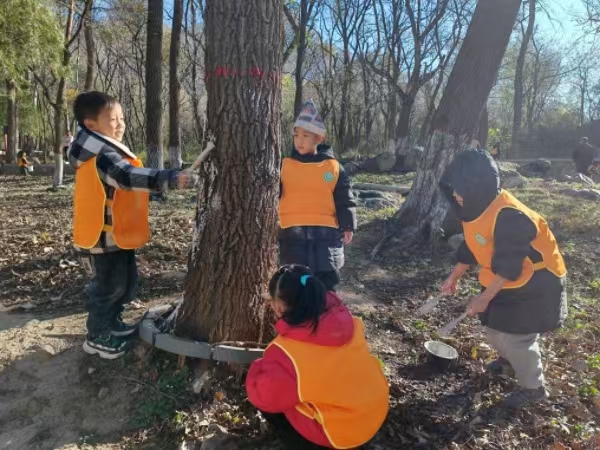 上午8:30,孩子們(men) 排著整齊隊伍出發了。穿過竹林,行走於(yu) 嵩山步道,他們(men) 用眼睛觀察,用耳朵聆聽,用雙手觸摸,用雙腳丈量,探索著冬天的一切,捕捉著大自然的信息,定格冬日的美好時光。活動一開始,老師們(men) 先向孩子們(men) 詳細講解了樹木的生長知識和冬季樹木養(yang) 護知識,采取提問方式啟發幼兒(er) 大膽思考、勇敢表達,讓他們(men) 在寓教於(yu) 樂(le) 的氛圍中接受“守綠、護綠、愛綠”的知識。小朋友們(men) 聽得津津有味,眼中閃爍著好奇與(yu) 興(xing) 奮的光芒。