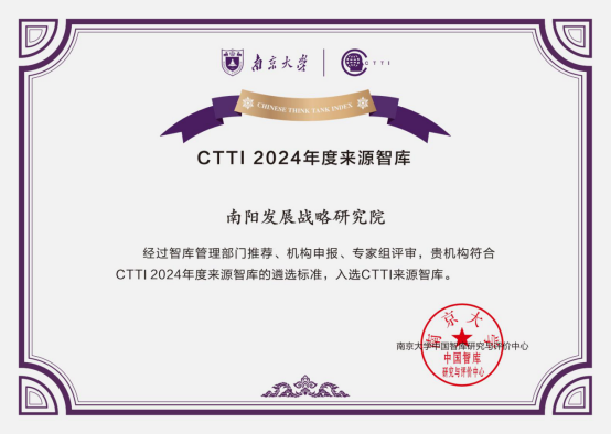 南京大學中國智庫研究與(yu) 評價(jia) 中心發布的中國智庫索引(CTTI)是國內(nei) 目前反映智庫影響力和知名度最權威的檢索工具。2024年度CTTI 來源智庫增補工作對智庫的基礎建設、課題與(yu) 項目、決(jue) 策谘詢、理論創新和輿論引導、內(nei) 部治理、個(ge) 性特色等指標均做出了更高的要求。南陽發展戰略研究院入選中國智庫索引(CTTI)來源智庫,標誌著南陽師範學院智庫建設工作得到了國內(nei) 權威智庫評價(jia) 機構的認可。