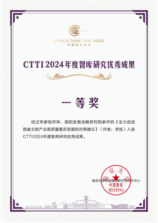 日前,由南京大學、蘭(lan) 州大學共同主辦的“2024新型智庫治理論壇”在蘭(lan) 州大學舉(ju) 行。會(hui) 議發布了中國智庫索引(CTTI)2024年來源智庫名錄、2024CTTI智庫建設最佳案例和智庫研究優(you) 秀成果。南陽師範學院-南陽發展戰略研究院成功入選中國智庫索引(CTTI)2024年來源智庫。同時,該院申報的《探索“三維一體(ti) ”工作機製,提升高校智庫決(jue) 策服務水平》獲智庫建設最佳案例獎,《全力促進我省文旅產(chan) 業(ye) 高質量複蘇發展的對策建議》(作者:李旭)獲優(you) 秀研究成果一等獎。