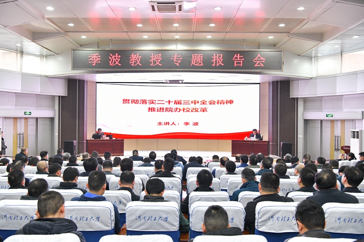 為(wei) 切實提升幹部教育培訓的針對性和實效性,全麵提升領導幹部的政治素質和履職能力。按照河南理工大學幹部分類培訓工作安排,12月4日下午,河南大學黨(dang) 委書(shu) 記季波教授應河南理工大學邀請在該校作《貫徹落實黨(dang) 的二十屆三中全會(hui) 精神,推進“院辦校”改革》專(zhuan) 題報告。報告會(hui) 由河南理工大學校黨(dang) 委副書(shu) 記解偉(wei) 主持。