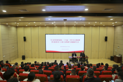 12月11日下午,學習(xi) 貫徹黨(dang) 的二十屆三中全會(hui) 精神省委教育工委宣講團成員、河南大學馬克思主義(yi) 學院副院長劉嘉堯走進鶴壁高校宣講黨(dang) 的二十屆三中全會(hui) 精神。鶴壁職業(ye) 技術學院黨(dang) 委書(shu) 記蔡太生、黨(dang) 委副書(shu) 記趙勇及其他班子成員,鶴壁能源化工職業(ye) 學院黨(dang) 委書(shu) 記楊會(hui) 明、校長劉富義(yi) 及其他班子成員,鶴壁汽車工程職業(ye) 學院班子成員和鶴壁職業(ye) 技術學院中層負責同誌及師生代表參加宣講會(hui) 。鶴壁職業(ye) 技術學院黨(dang) 委委員、宣傳(chuan) 部部長王曉慶主持宣講會(hui) 。