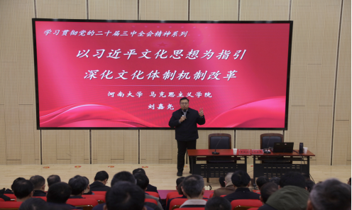劉嘉堯以《以習(xi) 近平文化思想為(wei) 指引 深化文化體(ti) 製機製改革》為(wei) 題,介紹了黨(dang) 的二十屆三中全會(hui) 的基本情況,並結合自身經曆以及豐(feng) 富的典型事例,從(cong) “厘清文化體(ti) 製機製改革的曆史進程”“深化文化體(ti) 製機製改革的重要意義(yi) ”“深化文化體(ti) 製機製改革的基本要求”“深化文化體(ti) 製機製改革的實踐路徑”四個(ge) 方麵,闡釋了如何深入學習(xi) 領會(hui) 習(xi) 近平總書(shu) 記在黨(dang) 的二十屆三中全會(hui) 上的重要講話精神,傳(chuan) 達了進一步全麵深化改革、推進中國式現代化的重大意義(yi) 和總體(ti) 要求,提出了宣傳(chuan) 思想文化工作提質增效的創新路徑,為(wei) 準確把握全會(hui) 重大意義(yi) 、科學謀劃高校高質量發展作了一場有指導性、有針對性的學習(xi) 輔導。