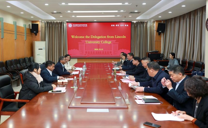 12月13日,馬來西亞(ya) 林肯大學學院校長阿米亞(ya) 一行應邀訪問河南醫學高等專(zhuan) 科學校,雙方就藥學專(zhuan) 業(ye) 合作辦學事宜進行了深入交流。會(hui) 議在圖文信息中心八樓第一會(hui) 議室舉(ju) 行。河南醫學高等專(zhuan) 科學校校長孫韜出席會(hui) 議並講話,副校長李建豐(feng) 主持會(hui) 議。