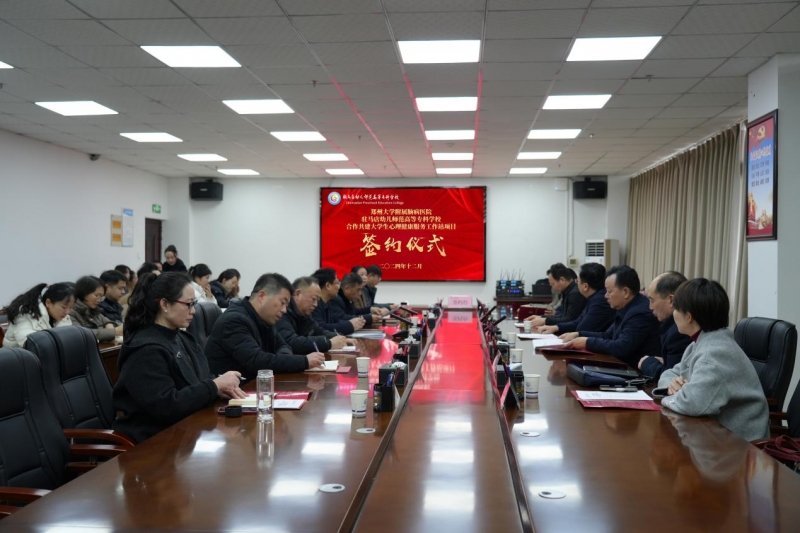 12月19日,駐馬店幼兒(er) 師範高等專(zhuan) 科學校與(yu) 鄭州大學附屬腦病醫院舉(ju) 行合作共建“大學生心理健康服務工作站”項目簽約儀(yi) 式。鄭州大學附屬腦病醫院黨(dang) 委書(shu) 記賈守峰、副書(shu) 記王複昆等一行八人出席簽約儀(yi) 式,駐馬店幼兒(er) 師範高等專(zhuan) 科學校黨(dang) 委書(shu) 記白鑫剛、副校長趙汝亮及相關(guan) 部門負責人、各學院心理專(zhuan) 幹教師參加了儀(yi) 式,儀(yi) 式由趙汝亮主持。