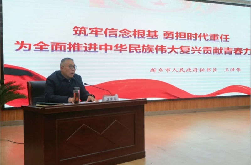 12月18日下午,新鄉(xiang) 市人民政府黨(dang) 組成員、秘書(shu) 長,發改委主任王洪偉(wei) 到新鄉(xiang) 職業(ye) 技術學院講授思政課。思政課在實驗樓一樓階梯教室開講,校黨(dang) 委書(shu) 記張林主持。校黨(dang) 委委員、副校長閆金友,各學院團務工作負責人,青馬工程學員和學生幹部代表200餘(yu) 人到場聽課。