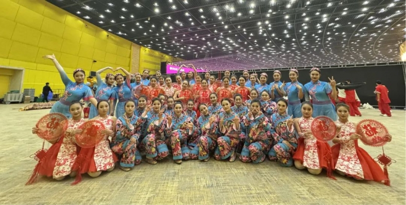 本次演出由戲曲舞蹈係老師彭雪瑩、趙孟月和崔巧雲(yun) 指導帶隊,有2023級普專(zhuan) 舞蹈表演1班、2班和2023級五年製舞蹈表演班共計47名學生參加。