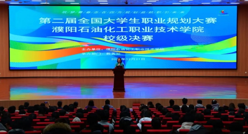 為(wei) 進一步加強學校生涯教育和就業(ye) 指導,增強學生職業(ye) 規劃意識,提升就業(ye) 競爭(zheng) 力,近日,濮陽石油化工職業(ye) 技術學院在圖書(shu) 館1號報告廳成功舉(ju) 辦第二屆全國大學生職業(ye) 規劃大賽校級決(jue) 賽。院長李殿峰出席活動。副院長李丹秋致開幕辭。相關(guan) 處室、二級學院負責人,大賽評委及學生代表600餘(yu) 人參加活動。