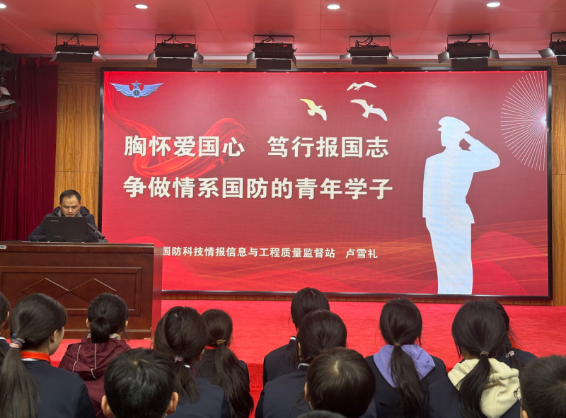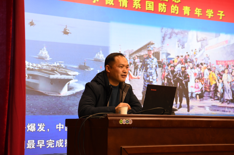 本次活動特邀主講人盧雪禮老師曾是一名軍(jun) 人,榮立過一等功兩(liang) 次。盧老師以《胸懷愛國情,踐行報國誌,爭(zheng) 做情係國防的青年學子》為(wei) 題,為(wei) 學生們(men) 帶來了一堂深刻而富有啟發性的國防教育課。
