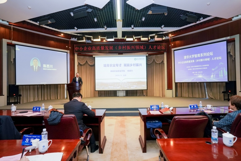 日前,由清華大學國家服務外包人力資源研究院主辦的清華大學係列智庫論壇—中小企業(ye) 高質量發展(鄉(xiang) 村振興(xing) 領域)人才論壇在清華大學FIT樓多功能廳舉(ju) 行,南陽農(nong) 業(ye) 職業(ye) 學院校長陳西川受邀參加並以“培育農(nong) 業(ye) 專(zhuan) 才 賦能鄉(xiang) 村振興(xing) ”為(wei) 題,進行主旨演講。