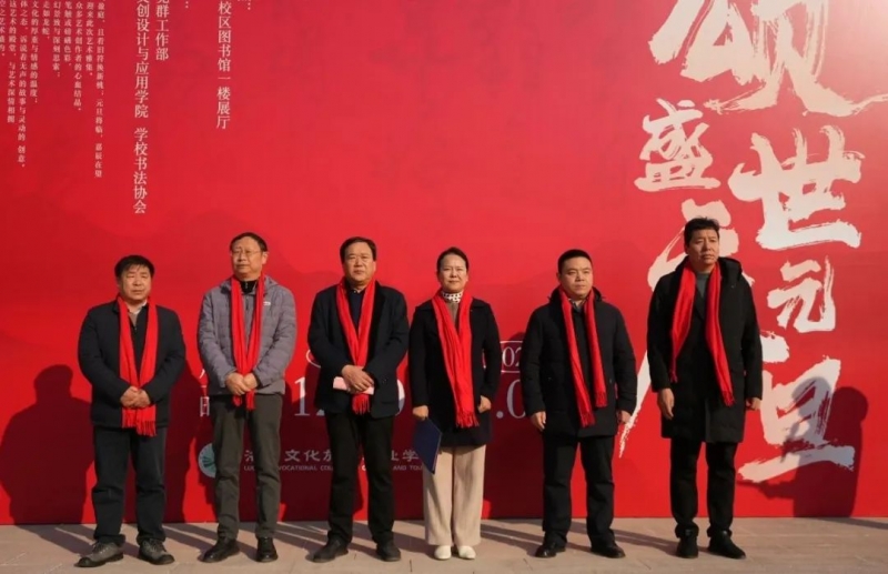 12月23日上午,由洛陽文化旅遊職業(ye) 學院工會(hui) 主辦,文創設計與(yu) 應用學院、書(shu) 法協會(hui) 共同承辦的“頌盛世·慶元旦”藝術展在伊濱校區圖書(shu) 館廣場開幕。