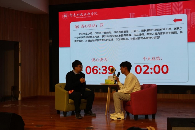 12月26日下午,河南財政金融學院2024年輔導員素質能力大賽複賽和決(jue) 賽在該校龍子湖校區音樂(le) 報告廳舉(ju) 行,來自金融學院、國際教育學院、會(hui) 計學院等單位的12位輔導員同台競技,該校副校長楊伯堅出席活動並致辭,黨(dang) 委宣傳(chuan) 部、教務處、學工部負責同誌和各學院黨(dang) 總支書(shu) 記、副書(shu) 記及全體(ti) 專(zhuan) 兼職輔導員觀看了比賽。