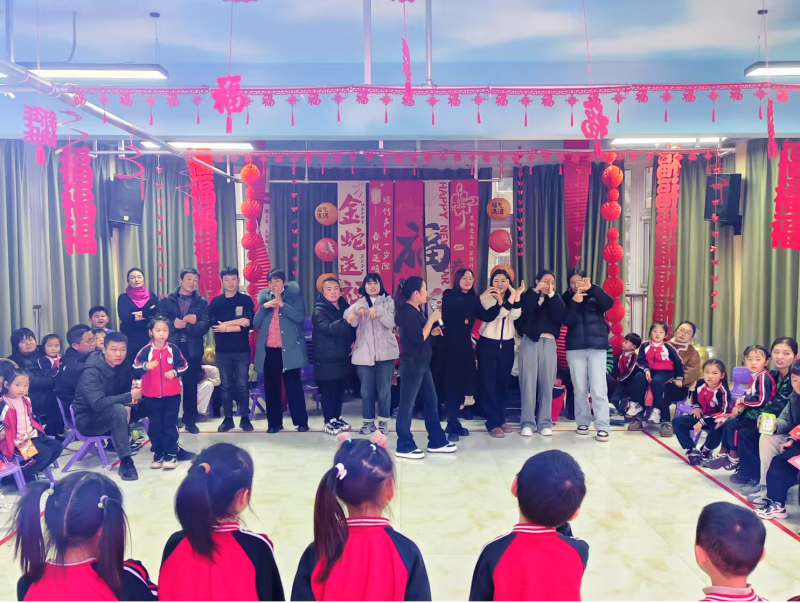 聯歡會(hui) 上,各班級精心準備的節目輪番上陣,亮點紛呈。兒(er) 歌表演節目裏,孩子們(men) 用稚嫩的聲音唱起歡快的新年兒(er) 歌,一張張小臉蛋上洋溢著純真的笑容。古詩朗誦、舞蹈表演等環節,每個(ge) 孩子自信滿滿,在屬於(yu) 他們(men) 的舞台上綻放光彩。親(qin) 子遊戲是活動中最歡樂(le) 的部分。家長和孩子你追我趕,為(wei) 了團隊的勝利全力以赴,現場充滿了歡聲笑語和加油聲。