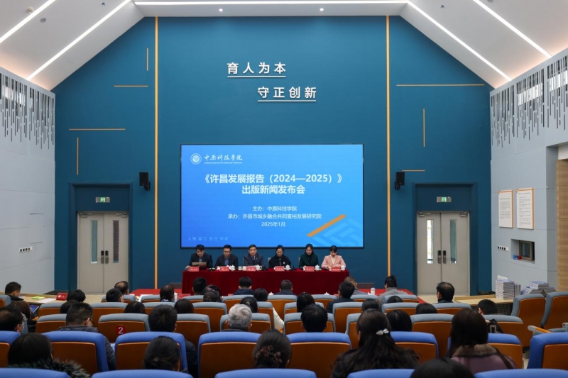 2025年1月5日下午,《許昌發展報告(2024—2025)》出版新聞發布會(hui) 在中原科技學院許昌校區舉(ju) 行。中原科技學院校長、許昌藍皮書(shu) 主編趙健出席會(hui) 議並講話。