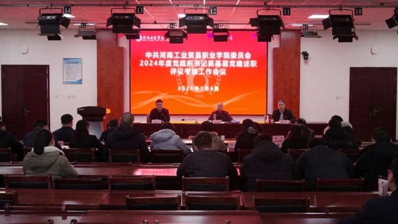 為(wei) 深入學習(xi) 貫徹習(xi) 近平新時代中國特色社會(hui) 主義(yi) 思想和黨(dang) 的二十屆三中全會(hui) 精神,壓緊壓實基層黨(dang) 組織書(shu) 記抓黨(dang) 建的政治責任,1月6日,河南工業(ye) 貿易職業(ye) 學院在龍湖校區召開2024年度基層黨(dang) 組織書(shu) 記抓黨(dang) 建述職評議考核會(hui) 議。校黨(dang) 委班子成員出席會(hui) 議。會(hui) 議由黨(dang) 委副書(shu) 記柴瑞帥主持。