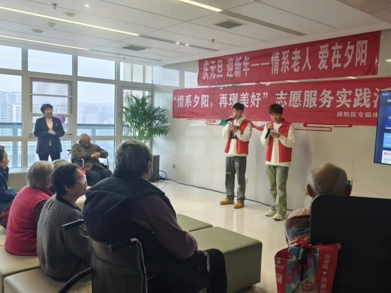 為(wei) 弘揚中華民族尊老敬老的傳(chuan) 統美德,增強基層黨(dang) 組織的凝聚力和黨(dang) 員的社會(hui) 責任感,2025年1月4日,濮陽醫學高等專(zhuan) 科學校臨(lin) 床醫學學院黨(dang) 總支十餘(yu) 位黨(dang) 員、入黨(dang) 積極分子誌願者,到濮陽平原醫院療養(yang) 中心開展“情係夕陽,再現美好”誌願服務活動,以表演文藝節目、心理健康科普教育、寫(xie) 對聯、贈送工藝品等形式為(wei) 老人們(men) 送去新年的祝福和誠摯的問候。