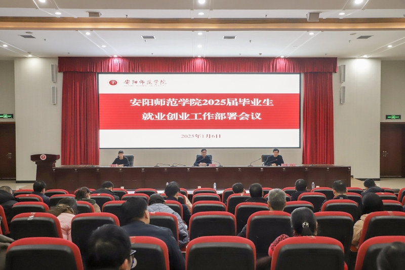 1月6日,2025屆河南省普通高校畢業(ye) 生就業(ye) 創業(ye) 工作會(hui) 議在鄭州舉(ju) 行。安陽師範學院在文博樓二樓報告廳設立分會(hui) 場,校長孔國慶、校黨(dang) 委副書(shu) 記王宏偉(wei) ,相關(guan) 職能部門負責人,各二級學院院長、黨(dang) 委副書(shu) 記、畢業(ye) 班輔導員及學生就業(ye) 指導服務中心、創新創業(ye) 學院全體(ti) 工作人員參加會(hui) 議。