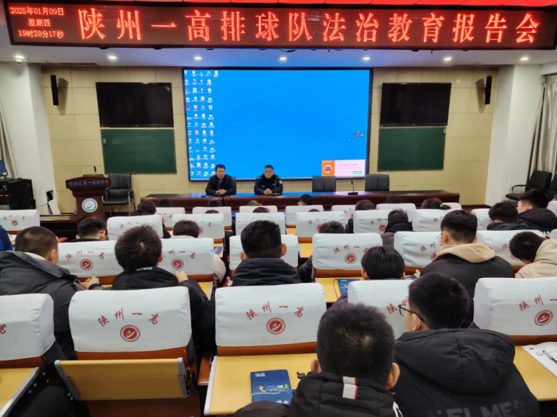 為(wei) 深入貫徹依法治國方略,增強學生的法律意識,培養(yang) 知法、懂法、守法、用法的時代新人,1月9日,三門峽市陝州區第一高級中學麵向排球生運動員,舉(ju) 辦一場別開生麵的法治報告會(hui) 。三門峽市湖濱區車站派出所副所長王景超、民警朱佳樂(le) 作為(wei) 嘉賓出席會(hui) 議。