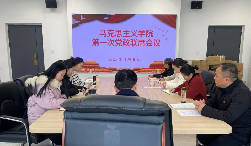 1月8日,信陽藝術職業(ye) 學院馬克思主義(yi) 學院2025年第一次黨(dang) 政聯席會(hui) 議順利召開,校黨(dang) 委書(shu) 記兼馬克思主義(yi) 學院黨(dang) 總支書(shu) 記甘蔗、院長白彬、支部委員、教研室主任出席會(hui) 議,會(hui) 議由白彬主持。