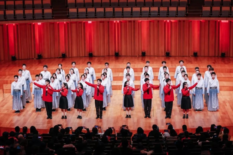 在國家大劇院音樂(le) 大廳,隨著背景音樂(le) 的響起,同學們(men) 仿佛穿越了千年時光,化身為(wei) 宋代詞人,用美妙動聽的朗誦,詮釋了學校創作的長詩《宋詞裏的家國》,再現了經典宋詞的絕代風華。他們(men) 的朗誦時而如幽咽泉流,低沉婉轉;時而似驚濤拍岸,激昂澎湃,飽含著對宋詞的深刻理解與(yu) 獨特感悟,引領著聽眾(zhong) 一同穿越時空,沉浸式領略大宋柔情與(yu) 豪邁的樂(le) 章,將宋詞的韻味與(yu) 意境展現得淋漓盡致。