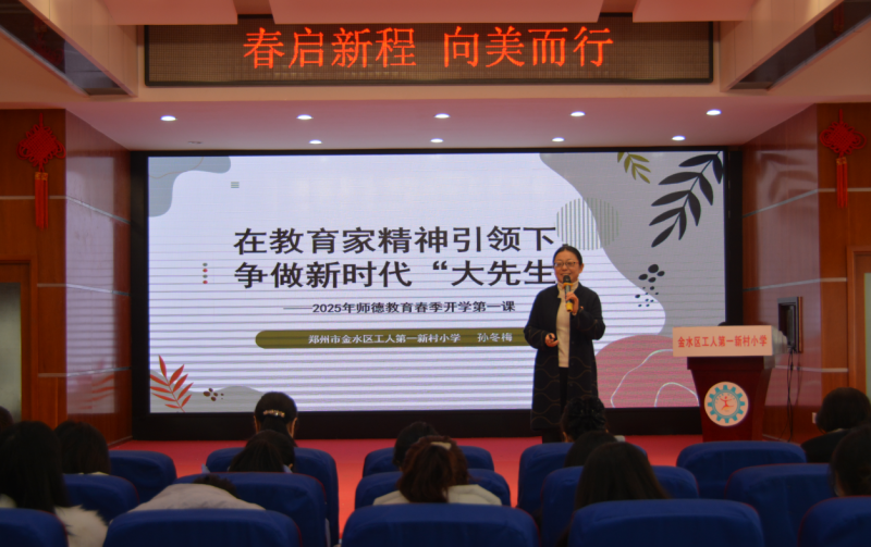 2月13日,鄭州市金水區工人第一新村小學開展了“在教育家精神引領下爭(zheng) 做新時代‘大先生’”師德主題教育暨2025年春季學期開學師德第一課活動。課程由學校黨(dang) 支部書(shu) 記、校長孫冬梅主講,全體(ti) 教職工參與(yu) 。此次活動旨在進一步加強師德師風建設,引導全體(ti) 教師以德立身、以德立學、以德施教,為(wei) 新學期教育教學工作開好局、起好步。