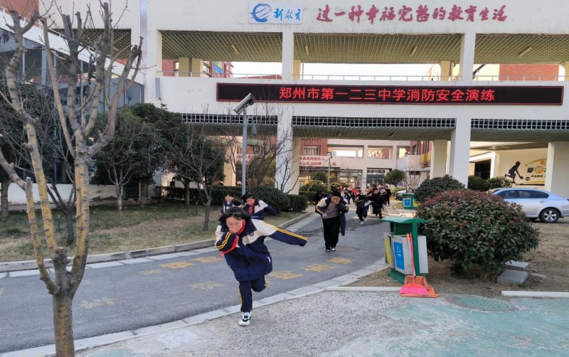 安全是校園生活的重中之重。2月14日下午,鄭州市第一二三中學組織了一場緊張有序的消防演練。警報聲響起,全體(ti) 師生迅速按照預定路線撤離至操場,整個(ge) 過程動作嫻熟、秩序井然。隨後,老師現場示範了滅火器的正確使用方法,不少學生代表踴躍上台實操,在實踐中掌握了關(guan) 鍵的消防技能。史校長對演練進行全麵總結,進一步強化了全校師生的消防安全意識和應急處置能力。