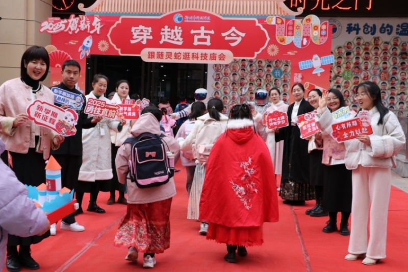 2月14日下午,鄭州市科創學校小學部開展了“穿越古今,跟隨靈蛇逛科技廟會(hui) ”新學期入學活動。