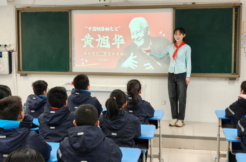 隱姓埋名三十載,鑄就深海核盾牌。老師們(men) 以“致敬國之脊梁 點燃報國之誌”為(wei) 主題開展思政教育,講述了黃旭華院士隱姓埋名、以身許國的動人故事,正是他不畏艱難、勇於(yu) 創新的精神,使我國實現了從(cong) 無到有、從(cong) 有到優(you) 的跨越,成為(wei) 世界領先的核潛艇大國。少先隊員們(men) 被黃旭華院士深沉的愛國情懷和堅定不移的信念深深打動。老師還鼓勵少先隊員們(men) 通過勤奮學習(xi) 知識方法、積極參與(yu) 創新實踐等方式提升自我,培養(yang) 新時代少年的責任感與(yu) 擔當精神。