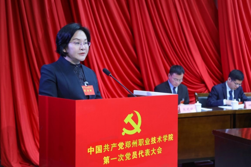 柴丹代表鄭州市委組織部向大會(hui) 召開表示祝賀。柴丹表示,鄭州職業(ye) 技術學院一以貫之地踐行黨(dang) 的教育方針,把立德樹人根本任務落到實處,聚焦“職教本科”創建及“雙高”建設兩(liang) 條工作主線,整體(ti) 辦學實力與(yu) 水平實現了顯著的躍升。此次黨(dang) 代會(hui) 的勝利召開意義(yi) 重大,必將在新的發展起點上,助力學校全麵盤點過往成就,以科學的思維謀劃未來藍圖,為(wei) 推動學校實現高質量發展帶來深刻且長遠的影響。柴部長對學校發展提三點意見:一是提高政治站位,加強黨(dang) 的全麵領導;二是聚焦立德樹人,培養(yang) 高素質技術技能人才;三是強化黨(dang) 建引領,激發學校發展活力。