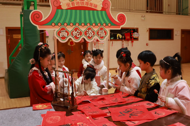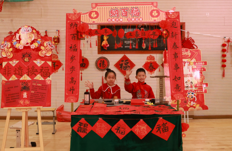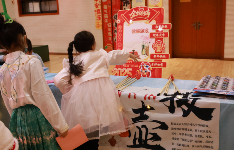 祭祖、拜年、貼春聯、逛廟會(hui) 、賞中華戲曲、嚐傳(chuan) 統美食……這些藏在非遺裏的中國故事,正以從(cong) 容姿態走向世界。寒假期間,同學們(men) 參與(yu) 其中,既過辭舊迎新的“時間之年”,更過向上向善的“文化之年”。在年俗文化設計展區域,匯聚了眾(zhong) 多精美的非遺作品,這些作品不僅(jin) 展現了同學們(men) 對春節傳(chuan) 統文化的獨特理解和創新設計,更彰顯了他們(men) 對非遺文化的熱愛與(yu) 傳(chuan) 承。互動體(ti) 驗區和熱鬧街市區更是將活動推向了高潮,同學們(men) 在雜貨小鋪裏挑選心儀(yi) 的商品,在冰糖葫蘆攤位前品嚐甜蜜的滋味,在畫蛇添福活動中感受傳(chuan) 統文化的樂(le) 趣,在投壺、拓印、猜燈謎等互動交流中傳(chuan) 承中華民族的文化基因。