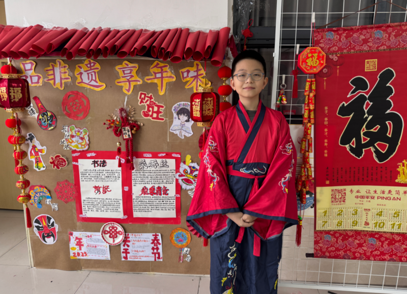 為(wei) 弘揚傳(chuan) 統文化,加深學生對中國傳(chuan) 統節日的理解與(yu) 熱愛,老師們(men) 別出心裁地設立了“年”知識小講堂這一主題區域。同學們(men) 滿懷激情地化身為(wei) 非遺春節代言人,通過細膩生動的繪畫、飽含深情的文字、條理清晰的研究報告、真實記錄的照片以及動態直觀的視頻等形式,全方位、多角度地講述了春節的由來、習(xi) 俗和傳(chuan) 說,生動地揭示了“過年”這一傳(chuan) 統節日所蘊含的奧秘和魅力。