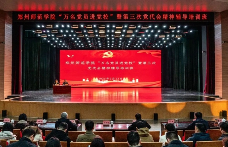 2月13日,蛇年新春開學第一天,鄭州師範學院以“碩士授權單位建設”為(wei) 主題,在嵩山學堂舉(ju) 辦“萬(wan) 名黨(dang) 員進黨(dang) 校”暨學校第三次黨(dang) 代會(hui) 精神培訓班。全校科級及以上幹部和教授、博士700餘(yu) 人參加培訓。黨(dang) 委書(shu) 記李仰智做專(zhuan) 題報告,省教育廳學位管理與(yu) 研究生教育處處長嶽德勝參加活動並講話。校長張銦主持培訓會(hui) ,黨(dang) 委副書(shu) 記王治浩主持交流發言會(hui) 。