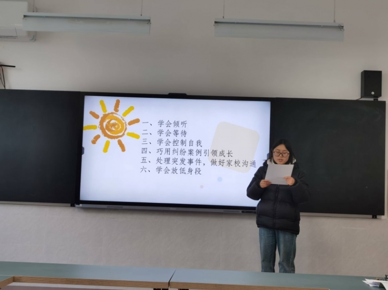 隨後,各班班主任分享了書(shu) 中各章節的主要內(nei) 容和各自的閱讀感悟,比如:如何建立良好的師生關(guan) 係、如何引導學生自我管理、如何處理班級中的突發事件等等。這本書(shu) 為(wei) 教師們(men) 提供了新的思路和方法,讓班級管理工作更加有章可循。