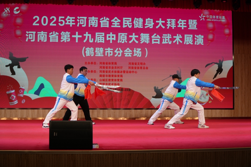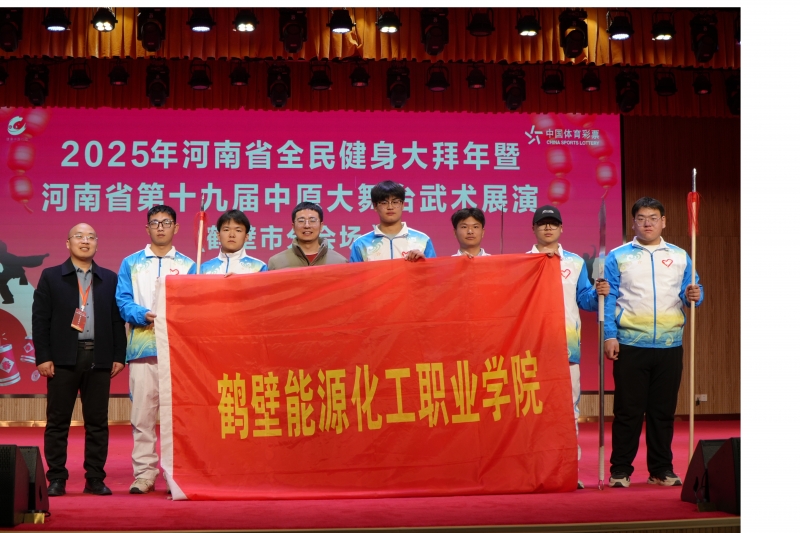 2月23日,鶴壁市山城區石林紅色教育培訓中心內(nei) 氣氛熱烈,掌聲雷動,2025年河南省全民健身大拜年暨河南省第十九屆中原大舞台武術展演(鶴壁分會(hui) 場)在此精彩上演。鶴壁能源化工職業(ye) 學院武術社團的學生憑借精彩的表演和出色的團隊協作,榮獲金獎,同時學校也被授予優(you) 秀組織獎。