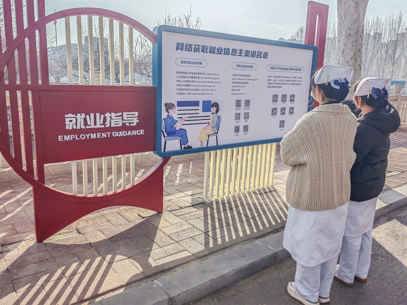 就業(ye) 文化長廊由職業(ye) 生涯規劃、就業(ye) 政策解讀、就業(ye) 服務指導、招聘信息發布、優(you) 秀畢業(ye) 生風采展示五個(ge) 部分組成,主題鮮明,內(nei) 容豐(feng) 富,引來眾(zhong) 多學生駐足瀏覽,有力營造了服務學生就業(ye) 的校園文化氛圍。