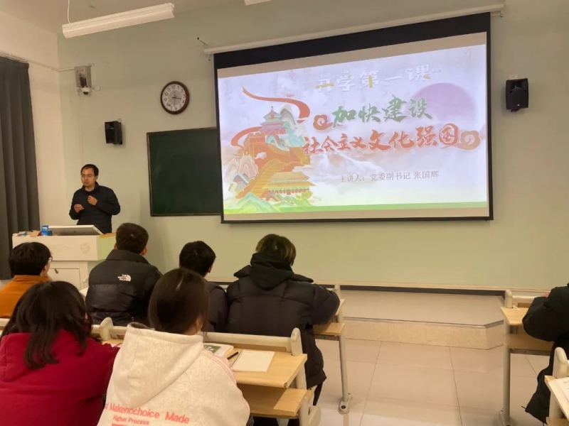 為(wei) 深入學習(xi) 貫徹黨(dang) 的二十屆三中全會(hui) 精神和習(xi) 近平總書(shu) 記關(guan) 於(yu) 思政課建設的重要論述,切實貫徹全國、全省教育大會(hui) 精神,充分發揮思政課立德樹人的主渠道作用,2月26日下午,鄭州城建職業(ye) 學院黨(dang) 委副書(shu) 記張國輝走進1號教學樓407教室,以《加快建設社會(hui) 主義(yi) 文化強國》為(wei) 題,為(wei) 建築工程學院師生講授了一場內(nei) 容豐(feng) 富、生動鮮活的思政課。