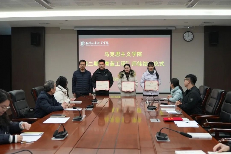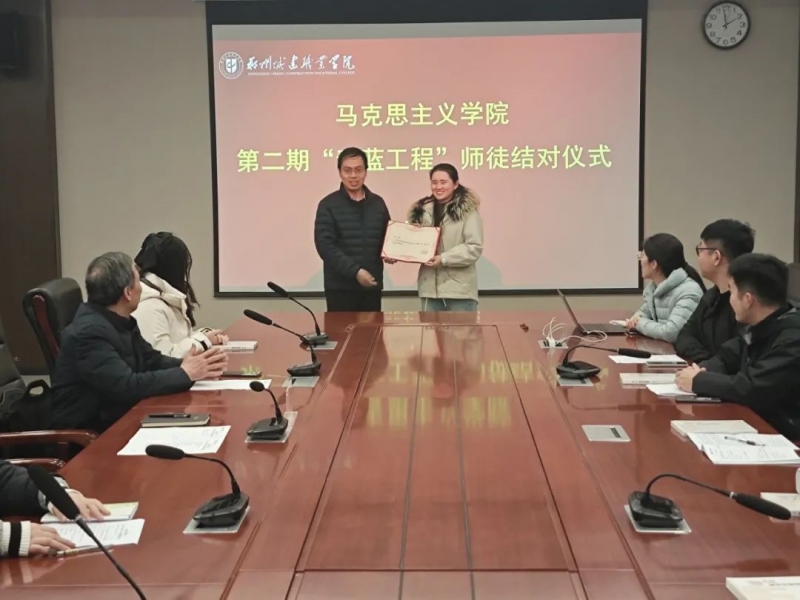 為(wei) 深入學習(xi) 貫徹習(xi) 近平總書(shu) 記關(guan) 於(yu) 思想政治教育的重要論述,加強馬克思主義(yi) 學院師資隊伍建設,充分發揮骨幹教師“傳(chuan) 、幫、帶”作用,促進青年教師全方位成長,2025年2月25日,鄭州城建職業(ye) 學院在圖書(shu) 館934室舉(ju) 行馬克思主義(yi) 學院第二期“青藍工程”師徒結對儀(yi) 式。校黨(dang) 委副書(shu) 記張國輝,馬克思主義(yi) 學院院長白廣思、院長助理代璽出席會(hui) 議,馬克思主義(yi) 學院全體(ti) 教師參加會(hui) 議。會(hui) 議由馬克思主義(yi) 學院院長助理代璽主持。