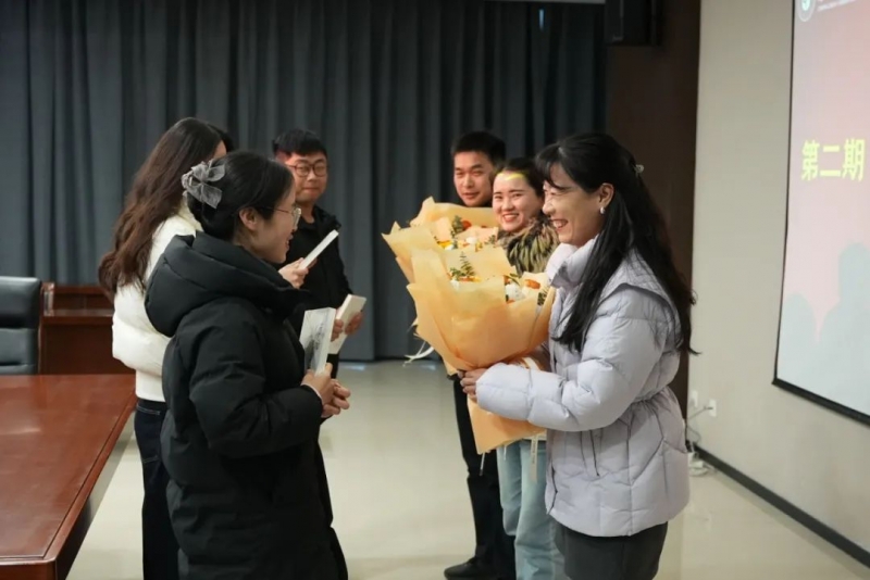 接著,第二期“青藍工程”青年教師上台為(wei) 三位指導教師送上鮮花以表達自己最誠摯的敬意。三位指導教師也為(wei) 青年教師送上了自己精挑細選的書(shu) 籍,希望青年教師潛心鑽研、認真求知,早日成為(wei) 一名優(you) 秀的人民教師。